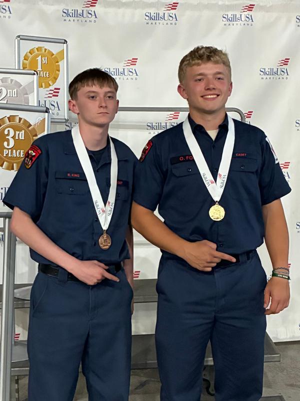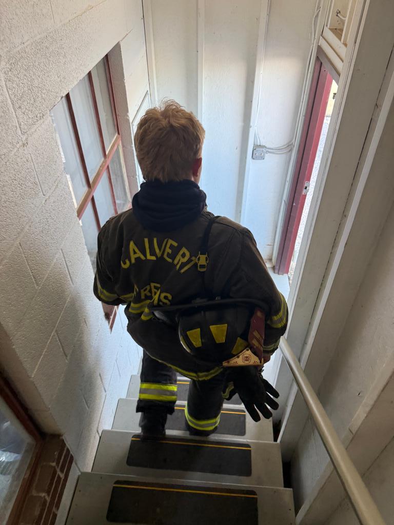 | On Saturday, April 18, 2026, Oliver Fox and Ryan King, two Calvert CTA Cadets who are members of Company 1, traveled to Carroll County (MD) for the State Skills USA Firefighting competition. Participants were graded on firefighting skills including throwing a ladder, dragging a victim, rope tying, and other related skills.